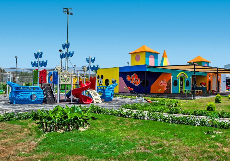 Die Infrastruktur ist breit aufgestellt: Empfangshalle mit 24-Stunden-Rezeption, Lobbybar und Café bilden das kommunikative Zentrum. WLAN steht in der gesamten Anlage bereit. Ein großer Außenbereich mit Pools, Wasserpark und Sonnenterrassen schafft Raum für Bewegung, während das Hallenbad wetterunabhängige Bahnen ermöglicht. Shops, Souvenir-Store, Supermarkt und Friseur bringen Alltagswege ins Haus. Highlight: Wasserpark mit Rutschen als lebendiger Mittelpunkt der Anlage.