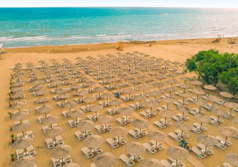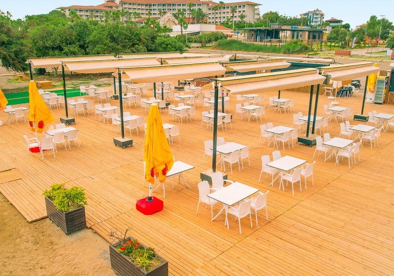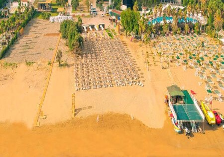 Ihr wohnt in Kumköy bei Side – ideal, wenn Ihr Strandtage mit Ausflügen in historische Kulissen verbinden möchtet. Der private Sandstrand des Hauses liegt ca. 1000 m entfernt; dort erwarten Euch Liegen, Schirme und eine Strandbar. In die Altstadt von Side sind es etwa 5 km, sodass Ihr antike Ruinen, Hafenflair und Boutiquen bequem in eine kurze Tour verpackt. Die Lage verbindet den Vorteil einer eigenständigen Resortwelt mit schnellen Wegen ans Meer und zur Stadt. Innerhalb der Anlage überbrückt Ihr Distanzen entspannt, unterstützt durch die klar strukturierte Infrastruktur und den hoteleigenen Shuttleservice. So plant Ihr Eure Tage flexibel: vormittags Strandzeit, nachmittags Wasserpark und abends ein Abstecher Richtung Side – oder Ihr bleibt im Resort und nutzt das vielseitige Gastronomie- und Showangebot. Highlight: Privater Strand mit Servicepunkten, kombiniert mit kurzer Distanz zur Altstadt von Side.