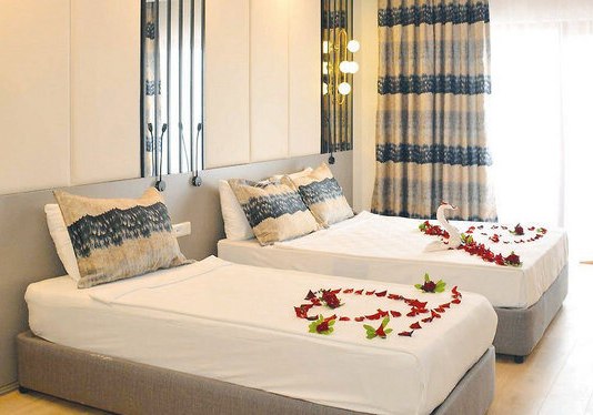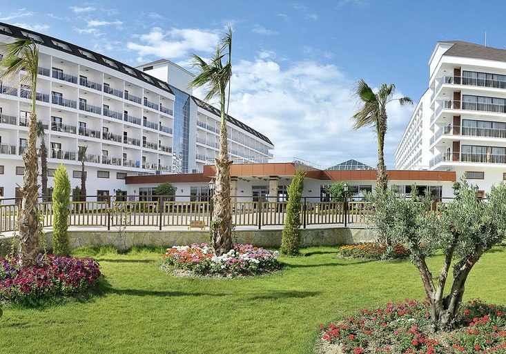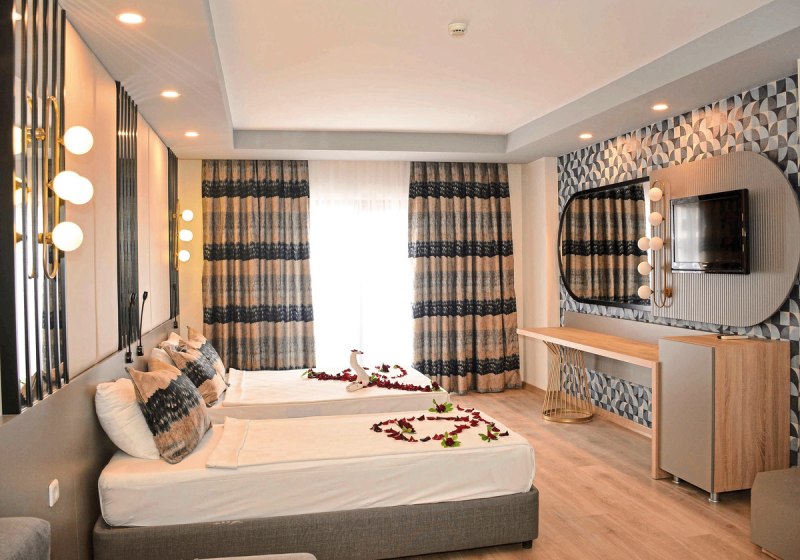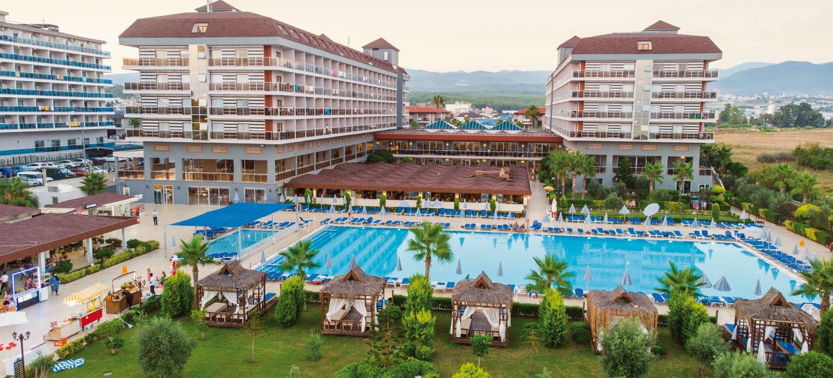 Im Eftalia Aqua Resort wohnt Ihr in einer weitläufig konzipierten Ferienanlage, die Euch mit lebendigem Wasservergnügen, familienfreundlichen Bereichen und klar strukturierten Zonen für Ruhe empfängt. Zwei Hauptgebäude und vier Nebengebäude fügen sich um große Poollandschaften, Sonnenterrassen und einen Aquapark mit 11 Wasserrutschen sowie 2 Babyrutschen. Dank direktem Zugang über eine Unterführung erreicht Ihr den Sand-/Kiesstrand, während Eftalia Island am Strand mit großem Hauptpool und mehreren Rutschenpools die Bühne für Euren Badetag bildet.
