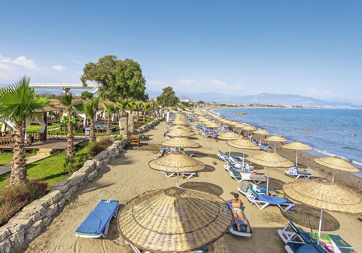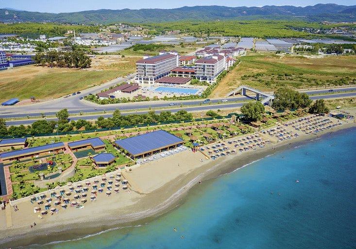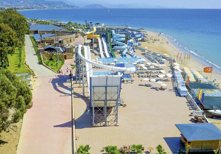 Ihr reist nach Türkler an der türkischen Mittelmeerküste. Das Eftalia Aqua Resort liegt durch eine Küstenstraße vom Sand-/Kiesstrand getrennt; eine Unterführung verbindet Anlage und Ufer bequem. Rund 15 Kilometer trennen Euch von Alanya, sodass Ihr Ausflüge in die Stadt mit ihren Geschäften und der maritimen Promenade einfach einplant. Eftalia Island, direkt am Strand, erweitert Eure Badefläche um einen großen Hauptpool und mehrere Rutschenpools.