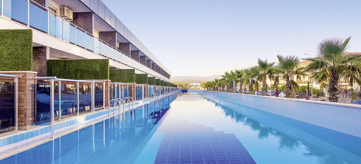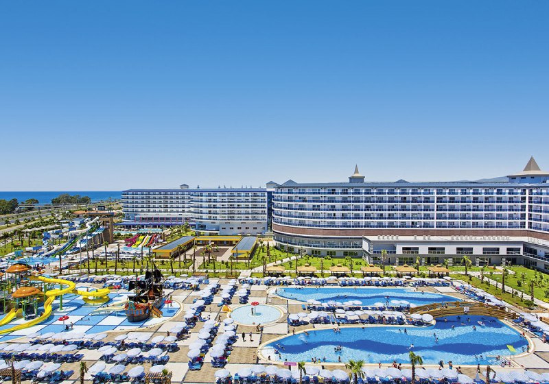Eftalia Ocean Hotel in Türkler verbindet Strandnähe über die Unterführung mit einer großen Pool- und Rutschenlandschaft, All-Inclusive-Gastronomie und vielen Familienangeboten. Die offizielle 5-Sterne-Klassifizierung, Baujahr 2017 und hervorragende Bewertungen für Sport, Lage und Zimmer geben klare Orientierung.
