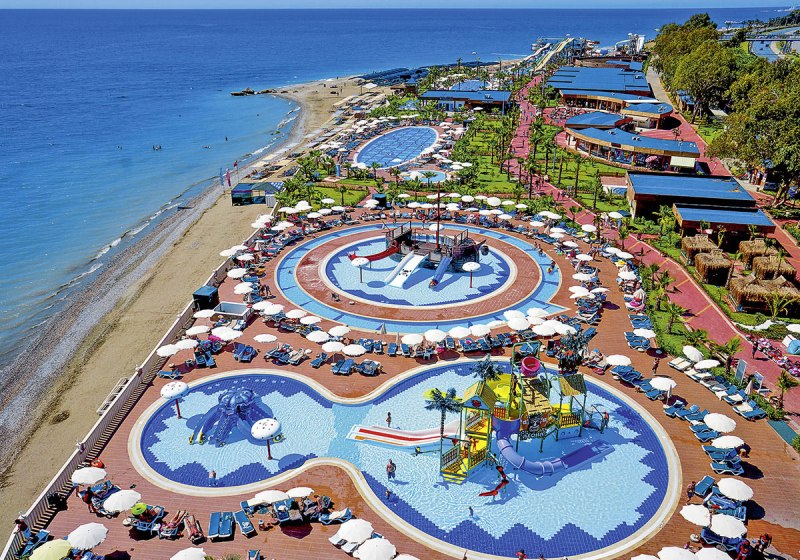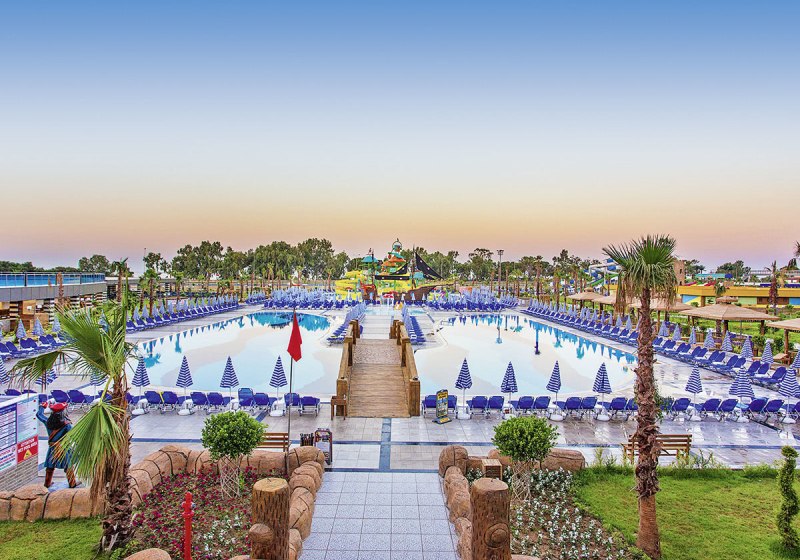 - Weitläufige Anlage: Sechs Außenpools, Kinderbereiche und Wasserpark strukturieren die Flächen.
