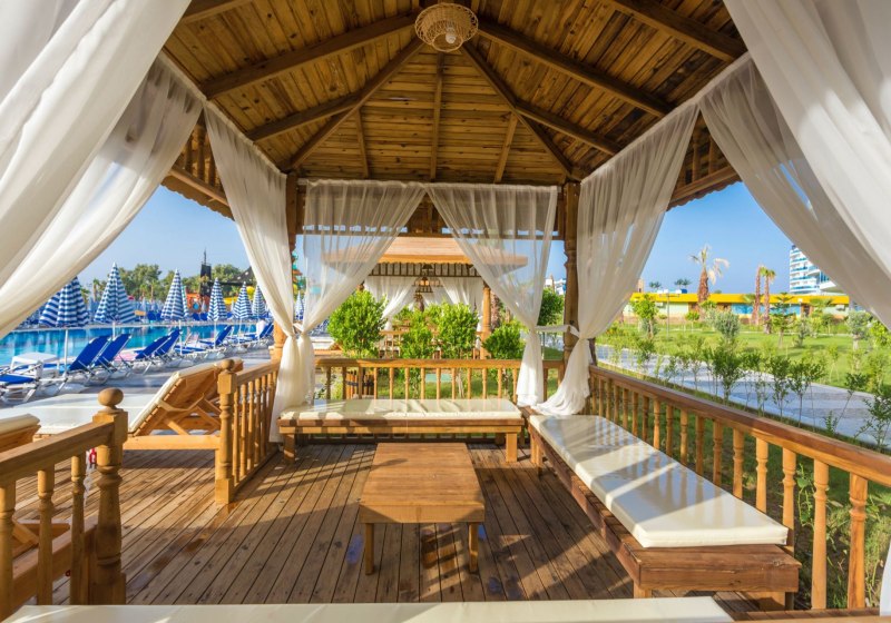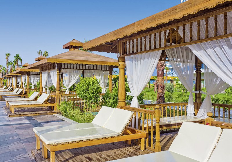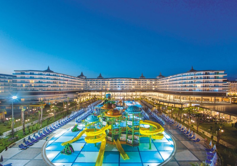 Die Anlage ist groß gedacht und praktisch organisiert: WLAN in der gesamten Anlage, sechs Außenpools, Hallenbad mit separatem Kinderbereich, zwei Kinderpools und eine Sonnenterrasse strukturieren den Tag. Zwölf Wasserrutschen und ein eigener Wasserpark setzen den Action-Punkt. Lobbys, Bars und Café spannen den sozialen Raum. Highlight: Wasserpark, Rutschen und mehrere Pools verteilen Bewegung und Pausen sinnvoll.