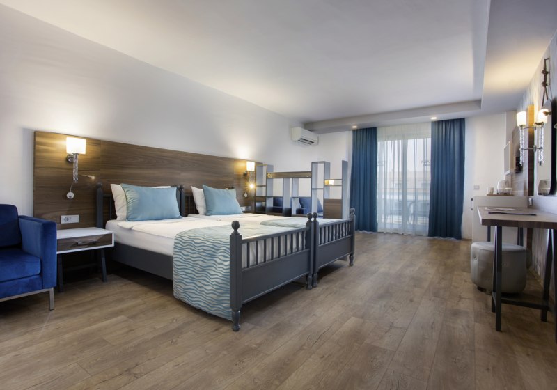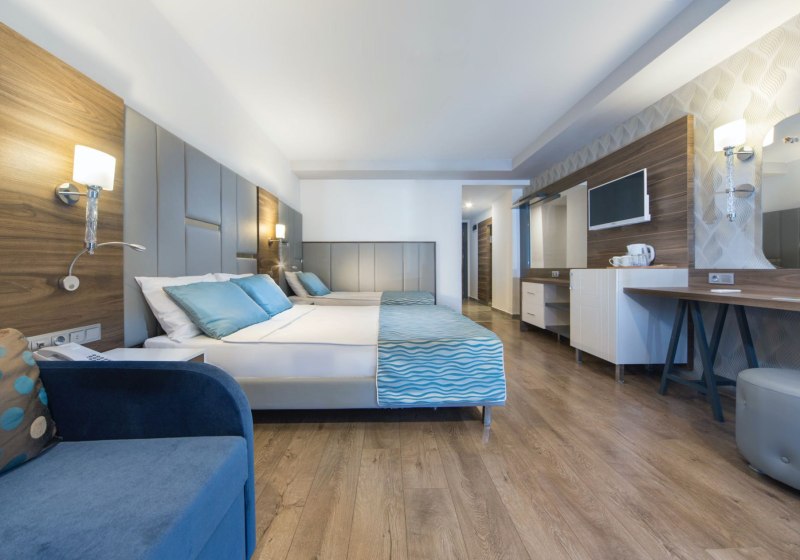 Familien freuen sich über zwei Kinderpools, Miniclub, Mini-Disco und betreute Angebote, während Ihr in Bars, Café und Lobbybar entspannte Pausen einlegt. WLAN ist in der gesamten Anlage verfügbar, der Theatersaal und gelegentliche Livemusik bringen abends Bühne ins Spiel. Wer den Tag aktiv angeht, findet Beach-Volleyball, Fitnessstudio, Tennis oder Wassersport. Später locken Spa-Center, Sauna und Dampfbad. So entsteht ein Urlaubstag mit klarer Taktung: aktiv, gut versorgt, bestens vernetzt. Highlight: Offiziell mit fünf Sternen kategorisiert, Baujahr 2017 und eine sehr umfassende Infrastruktur.