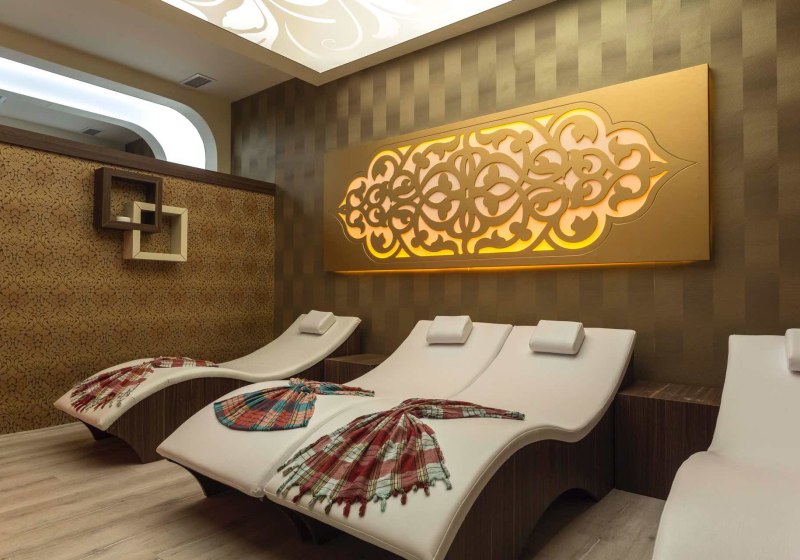 - Spa: Sauna, Dampfbad und Hamam bilden das Zentrum.