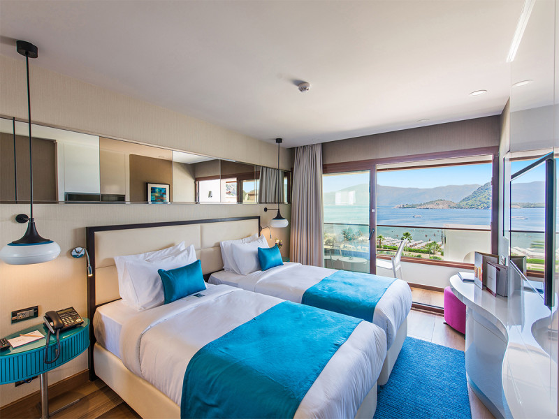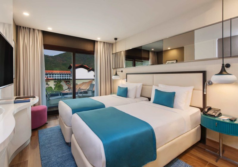 Ihr bewegt Euch zwischen Sonnenterrasse, Pool und Strand ohne Umwege, während das Ortszentrum von Içmeler nach einem kurzen Spaziergang erreicht ist. Die Zimmer sind durchdacht ausgestattet und auf Erholung ausgerichtet. Kulinarisch erwartet Euch eine Mischung aus Buffet, À-la-carte und ganztägiger Coffee Company. Wer sich nach Wellness sehnt, wechselt von Sauna und Dampfbad ins traditionelle Hamam oder bucht eine Massage. Highlight: Adults-only am Strand, kurze Wege, klare Atmosphäre.