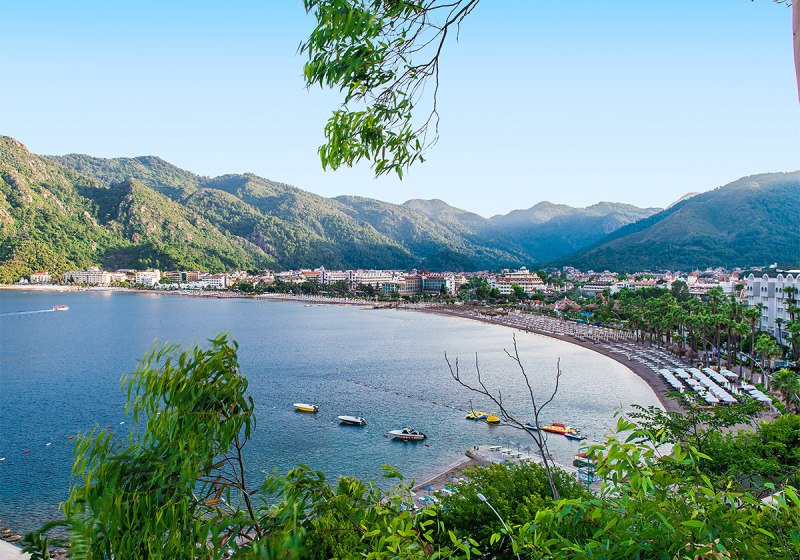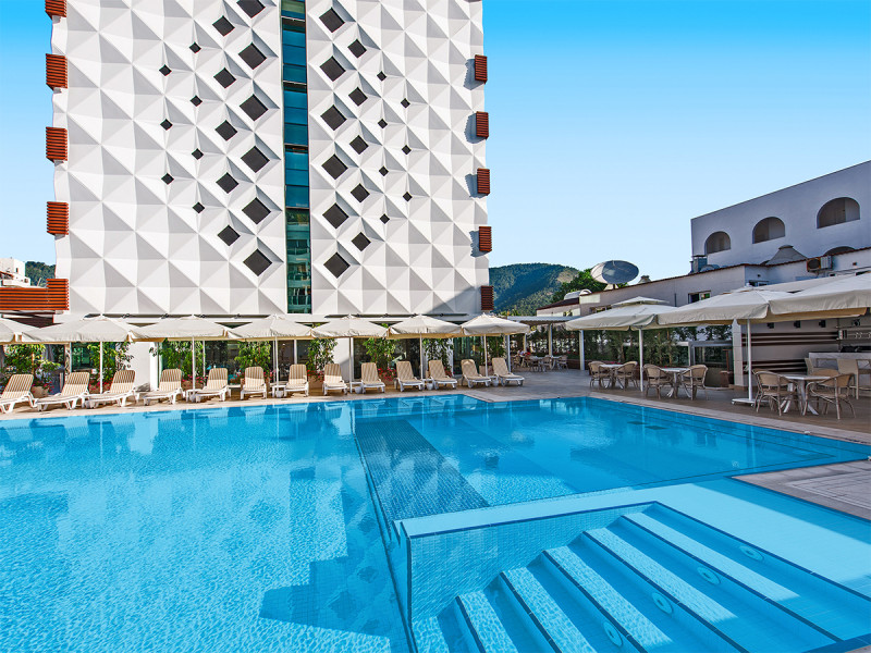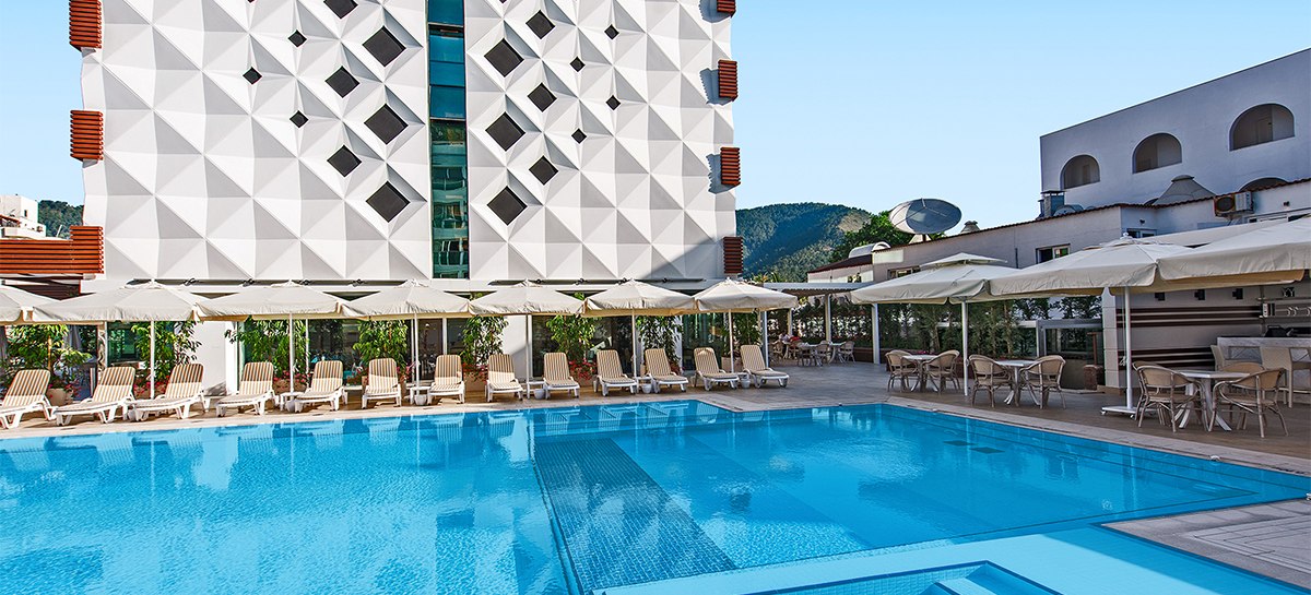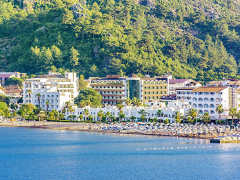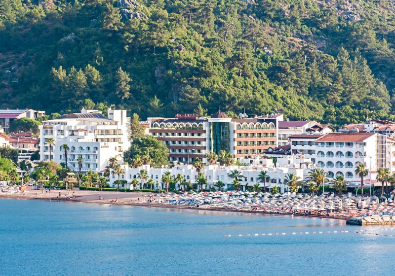 Das Hotel liegt etwa 40 Meter vom Kies-Sandstrand und rund 100 Meter vom Ortszentrum Içmeler entfernt; die Wege sind kurz, die Orientierung einfach. Rund 8 Kilometer trennen Euch vom lebhaften Marmaris, die Hauptstraße mit Taxi- und Minibusverbindungen verläuft in der Nähe. So verbindet Ihr Badezeiten am hoteleigenen Strandabschnitt mit schnellen Abstechern in Cafés, Bars und Geschäfte. Wer urbanes Flair sucht, plant einen Ausflug nach Marmaris; wer das Naheliegende bevorzugt, findet im kompakten Umfeld von Içmeler kurze Wege und eine entspannte Taktung zwischen Meer, Promenade und Rückzugsort im Hotel.