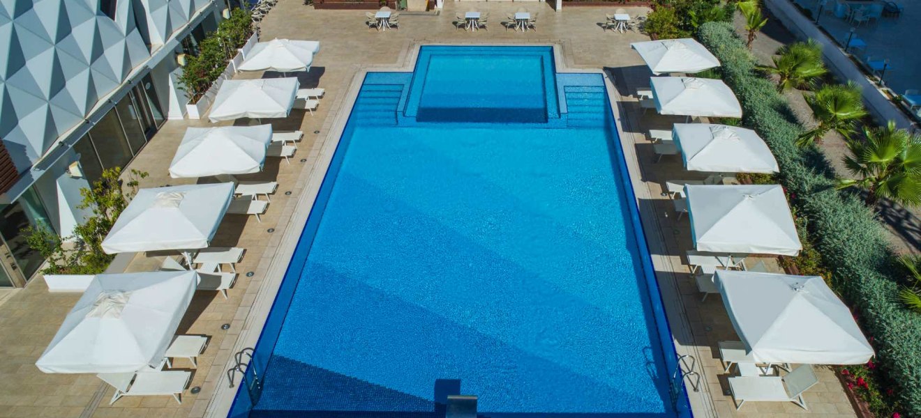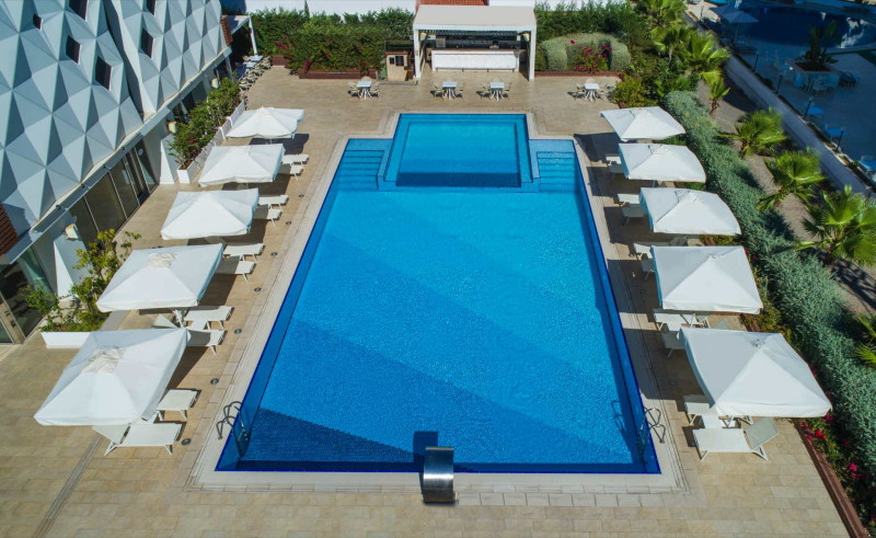 Das Haus ist kompakt geplant: 5 Etagen, 93 Zimmer, Aufzug, eine klare Lobbystruktur und WLAN im gesamten Hotel inklusive. Am Süßwasserpool entspannt Ihr auf der Sonnenterrasse, während am hoteleigenen Strandabschnitt Liegen, Auflagen, Sonnenschirme und Badetücher bereitstehen. Ein Friseur befindet sich im Haus.