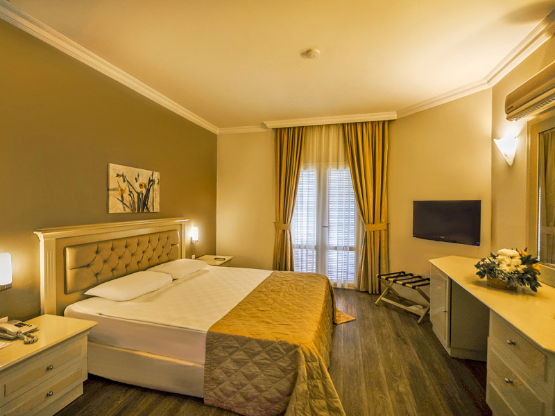 Im Emelda Sun Club wohnt Ihr direkt am hoteleigenen Sand- und Kiesstrand von Çamyuva. Die Anlage präsentiert sich als weitläufiges Resort mit sechs Außenpools, lebendiger Tagesanimation und Abendshows im Amphitheater. Familien finden Miniclub, Kinderpool und Spielbereiche, während Ruhesuchende Zwischenräume im Garten und Strandpavillons schätzen.
