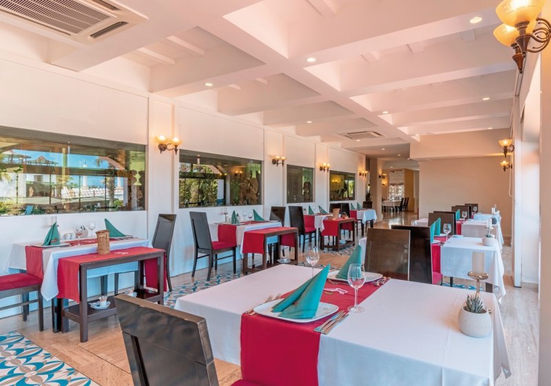 Mit All-Inclusive Plus seid Ihr ganztägig gut versorgt: Frühstück, Brunch von 10 bis 11 Uhr, Mittag- und Abendessen sowie Snacks und Getränke – alkoholfrei und alkoholisch. Das Buffetrestaurant bildet die Basis, mehrere Bars verteilen die Stationen vom Lobbybereich bis zum Pool und Strand.