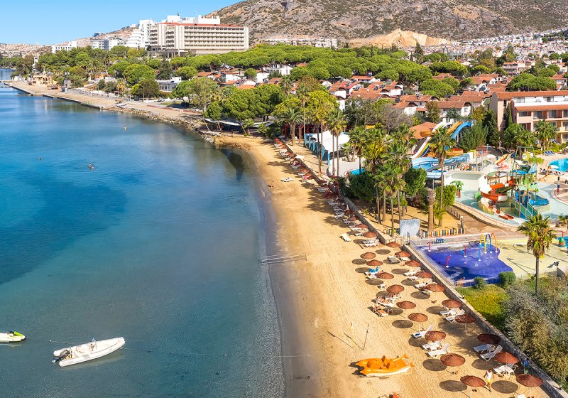 - Direkt am Meer: Unmittelbare Lage am Sand‑/Kiesstrand, 6 km bis Kusadasi.