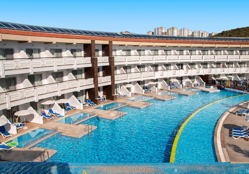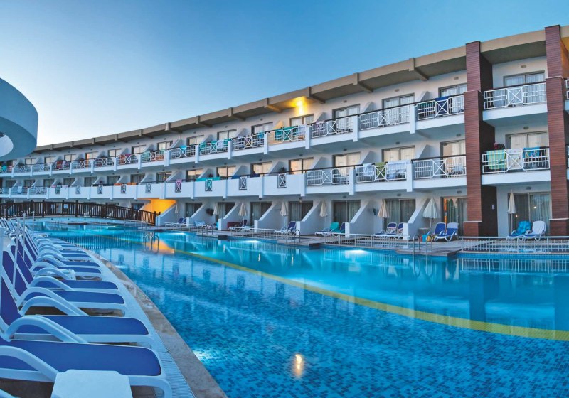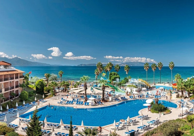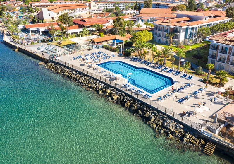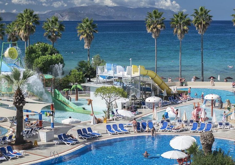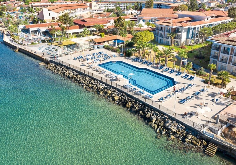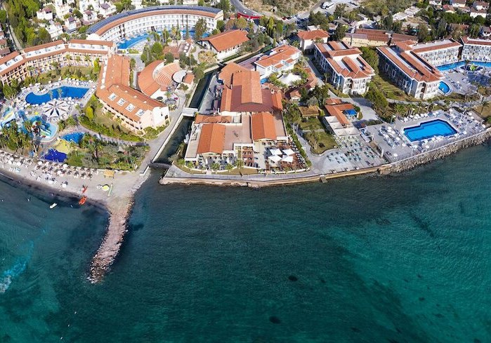 Ephesia Holiday Beach Club steht für direkte Strandlage, vier Pools und einen Aquapark mit sechs Rutschen. Mit Hauptrestaurant, À‑la‑carte‑Auswahl, Bars sowie Beach‑ und Pool‑Snackbar erlebt Ihr All‑Inclusive mit kurzen Wegen. Familien profitieren von Miniclub, Kinderbecken und strukturiertem Programm.