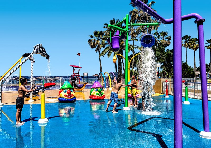 - Vier Pools: Mehrere Becken und Kinderbereiche strukturieren den Badetag.