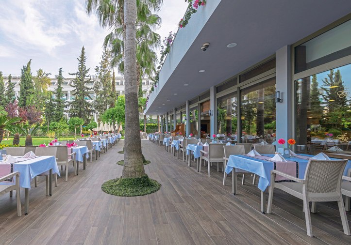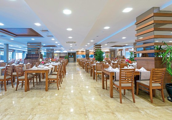 Die Verpflegung ist auf All-Inclusive ausgelegt: Frühstück, Mittag- und Abendessen sowie Snacks versorgen Euch über den Tag hinweg. Das Hauptrestaurant mit Terrasse bildet den kulinarischen Mittelpunkt; zusätzliche À-la-carte-Restaurants bringen Abwechslung ins Programm, wenn Ihr einmal länger am Tisch sitzen möchtet.