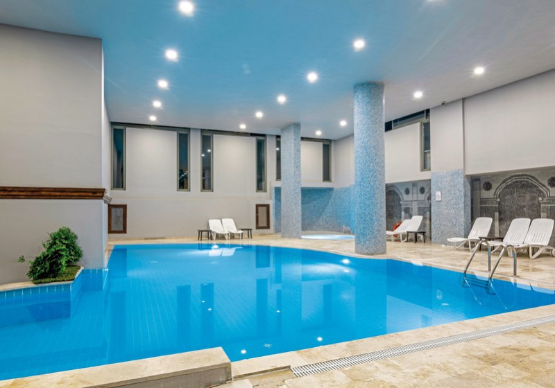 Zwischen Strand und Pool bietet Ihr Euch ruhige Pausen im Wellnessbereich. Hammam und Sauna bilden das Herzstück, ergänzt vom Hallenbad, das wetterunabhängige Bahnen ermöglicht. So variiert Ihr den Rhythmus des Tages zwischen warmen Zonen und erfrischenden Wasserphasen.
