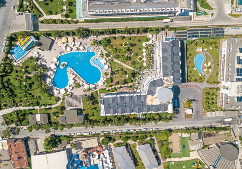 • Liegestühle • Außenpool • Sonnenschirme • Poolbar • Sonnenterrasse • Badetücher • Wasserrutsche • Wasserpark • Pool