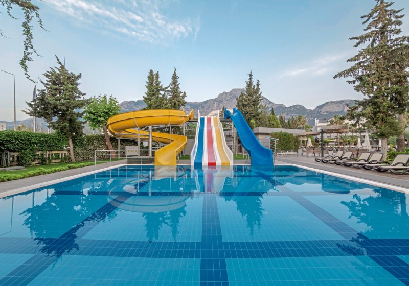 - Rutschenpool: Separater Pool mit drei Wasserrutschen für aktive Stunden.