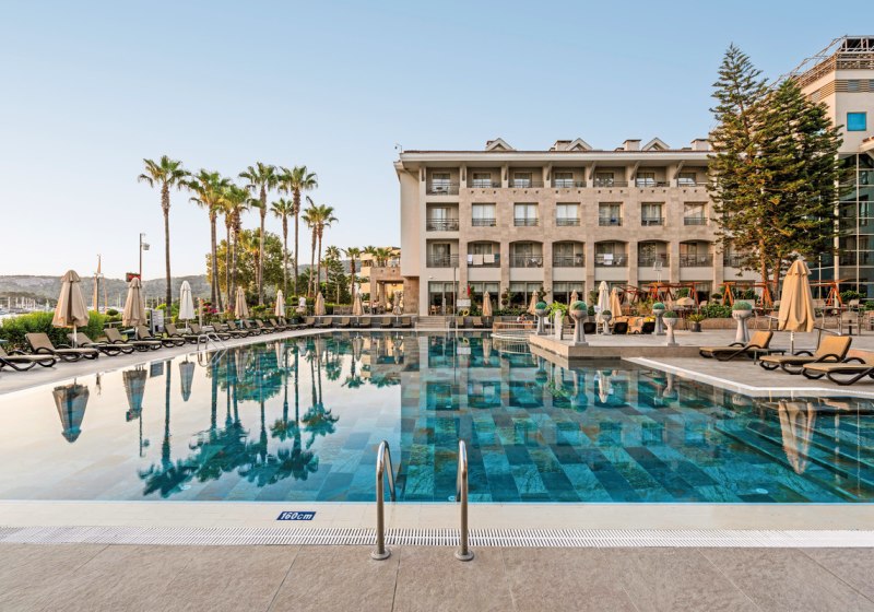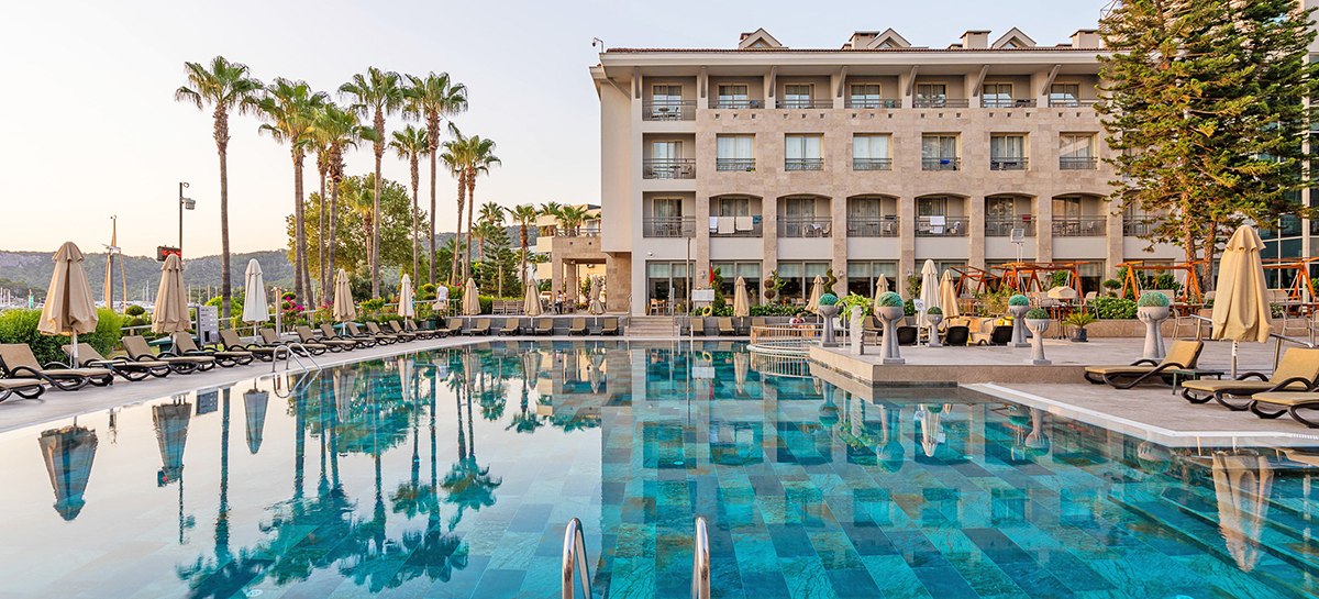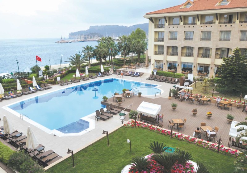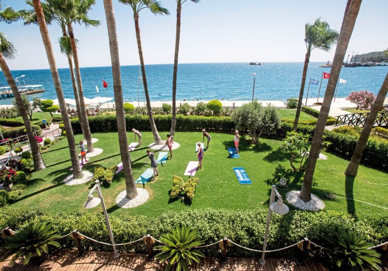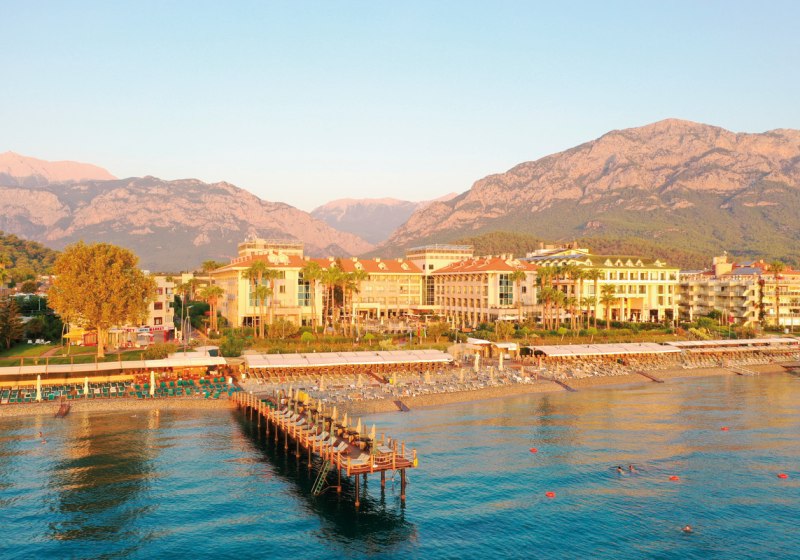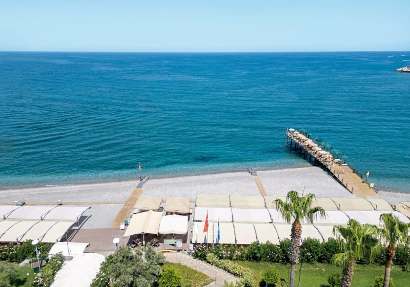 Ihr residiert in Kemer direkt am Kiesstrand, mit Zentrum und Yachthafen bequem zu Fuß erreichbar. Für Ausflüge stehen Minibusse und Taxis bereit, die Wege bleiben kurz. Am Strand nutzt Ihr Liegen, Auflagen und Schirme – organisiert und nah am Geschehen. Highlight: Fußläufige City- und Hafenlage plus unmittelbarer Zugang zum Meer.