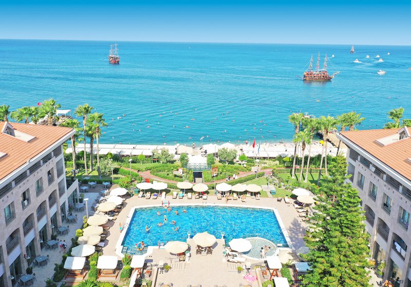 Wenn Ihr an Kemers Küste eine klar strukturierte Anlage mit stimmigem Service, inkludierten Wellness-Leistungen und vielseitiger All-Inclusive-Gastronomie sucht, findet Ihr hier den passenden Rahmen für eure Ferien. Die Lage am Kiesstrand und die fußläufige City-Anbindung machen Eure Tage angenehm planbar.