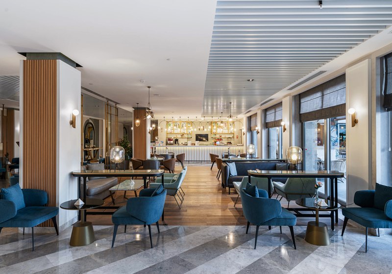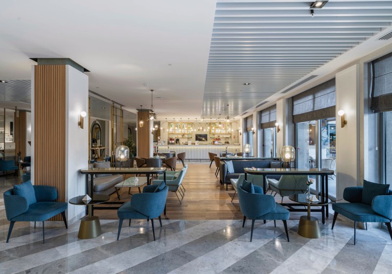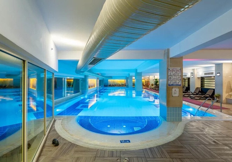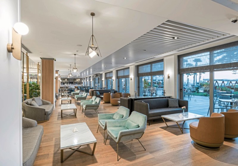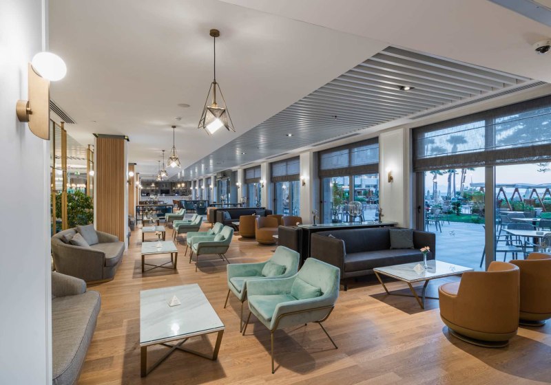 Die Atmosphäre ist lebendig, aber übersichtlich strukturiert: Empfangshalle, Lifts und Sitzbereiche, dazu Bars für verschiedene Tageszeiten – von Lobby bis Pool. Wer Austausch sucht, findet ihn bei Animation und am Abendprogramm; Rückzug gelingt auf dem Balkon oder im Spa. Highlight: Inklusive Sauna, Dampfbad und Türkischem Bad für entspannte Stunden in den Ferien.