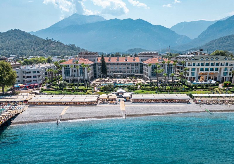 Im Fame Residence Kemer & Spa wohnt Ihr direkt am Kiesstrand von Kemer und erlebt ein Haus, das Badezeit, Geselligkeit und Komfort klug verbindet. Weitläufige Außenbereiche mit Pool, Garten und Sonnenterrassen gehen fließend in das Strandleben über. Familien fühlen sich dank Kinderangeboten ebenso wohl wie Paare, die Ruhe mit Abwechslung kombinieren. Highlight: Direkte Strandlage mit kurzen Wegen zwischen Pool, Terrasse und Meer.