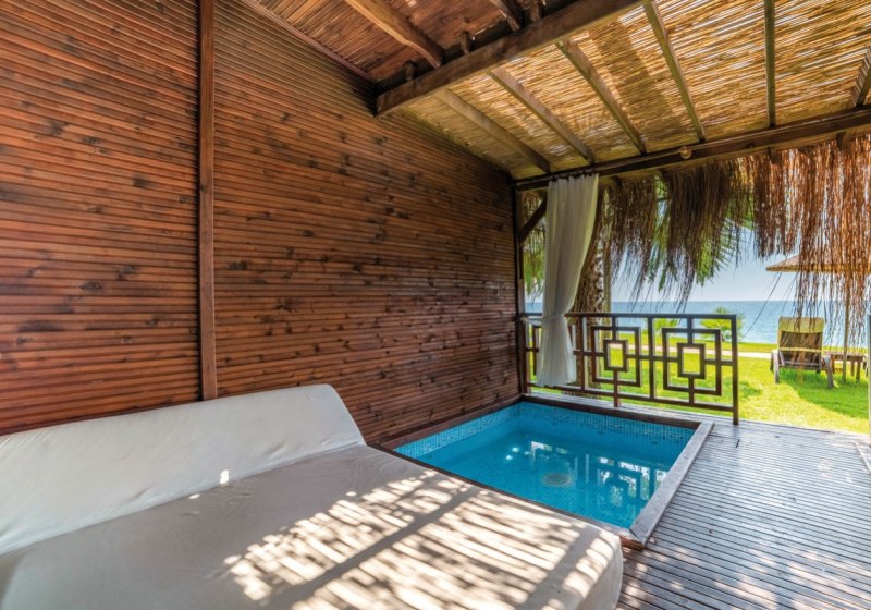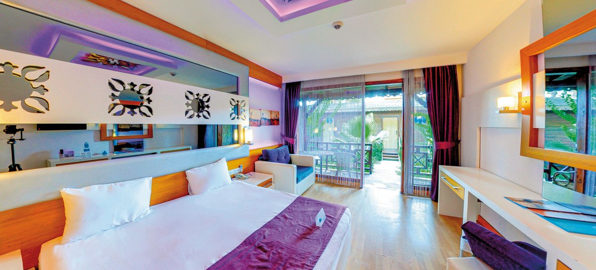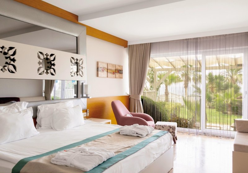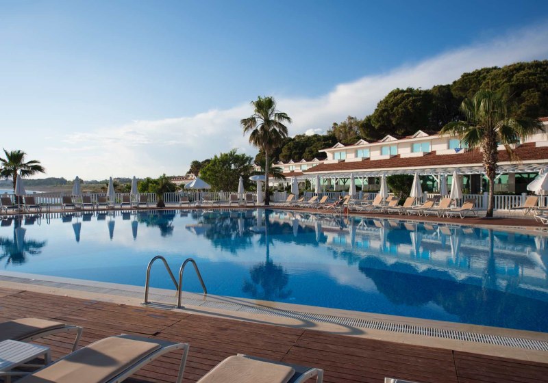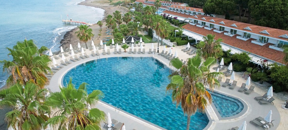 Ihr residiert direkt am eigenen Sand-/Kiesstrand. Bis Manavgat sind es rund 17 Kilometer, zum Flughafen Antalya etwa 80 Kilometer. Die Wege in der Anlage sind kurz, der Übergang zu Strand und Pool ist nahtlos. So strukturiert Ihr den Tag ohne weite Distanzen. Highlight: Direkter Strandzugang mit klarem Fokus auf Bade- und Relaxzeiten.
