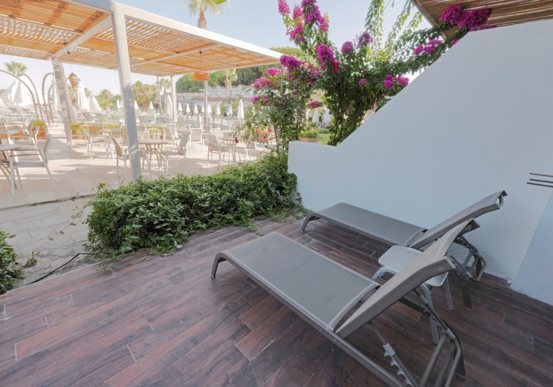 Im Flora Garden Beach wohnt Ihr direkt am privaten Sand- und Kiesstreifen, abgeschirmt und doch offen für lange Tage am Wasser. Adults Only ab 16 Jahren formt die Atmosphäre klar und ruhig. Zwei Süßwasserpools mit Sonnenterrassen strukturieren den Tag, während Ihr zwischen Liegen, Auflagen und Schirmen entspannt. Highlight: Adults-only-Konzept ab 16 Jahren sorgt für geradlinige Ruhe.