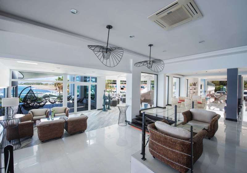 Die Anlage bündelt Wege, Pools und Strandzugang übersichtlich. Rezeption und Lobby mit WLAN bilden den Drehpunkt, Shops und Friseur ergänzen die Infrastruktur. Zwei Süßwasserpools, Sonnenterrassen sowie Liegen und Schirme sind fest installiert. Ein Theater- beziehungsweise Veranstaltungssaal setzt abends den Rahmen. Highlight: Zwei Pools und breite Terrassen schaffen gut organisierte Außenflächen.