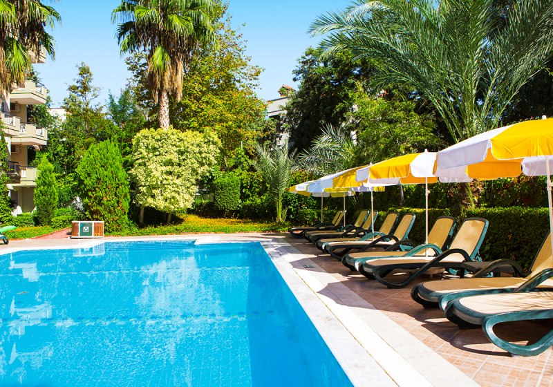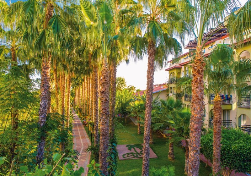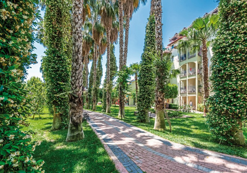 Im Gardenia Beach wohnt Ihr direkt am Kies‑Sandstrand von Karaburun und taucht in eine Anlage ein, die sich wie ein lebendiger Garten anfühlt: Wege zwischen Grün, drei Süßwasserpools, Sonnenterrassen und Liegewiesen führen Euch zu ruhigen Nischen oder mitten ins Geschehen. Familien finden mit Miniclub, Kinderbecken und Rutschen schwungvolle Abwechslung, während Aktivfans Fitnessraum und Sportfelder nutzen. Highlight: Direktlage am Strand mit weitläufiger Gartenanlage und drei Pools.