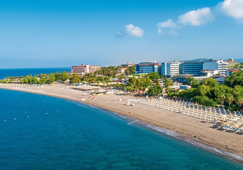 Gardenia Beach kombiniert direkte Strandlage in Karaburun mit einer weitläufigen Garten‑ und Poolstruktur, All‑Inclusive‑Gastronomie samt Live‑Kochen und einem klaren Unterhaltungsprofil von Tagesanimation bis Abendshow. Familien profitieren von Miniclub, Spielplätzen und Kinderbecken.