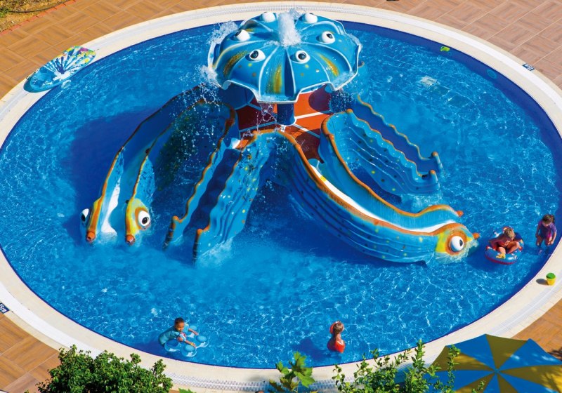 - Poollandschaft: Drei Süßwasserpools mit Kinderbecken und Rutsche.