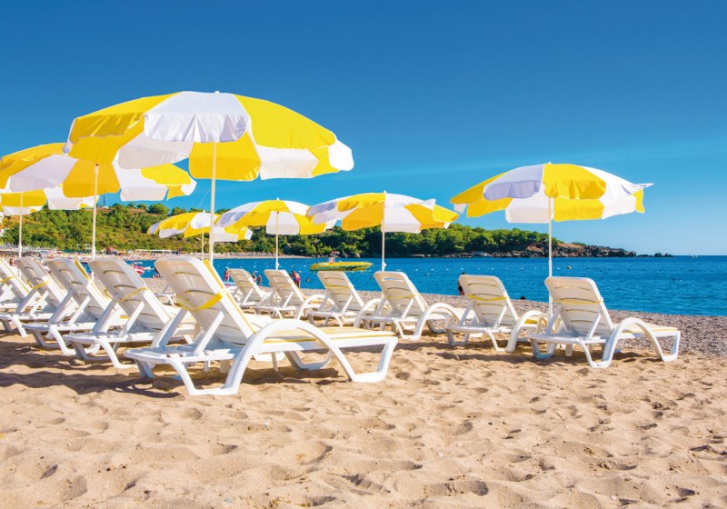 - Am Strand: Liegen und Schirme am Strand inklusive Strandtuch‑Service.