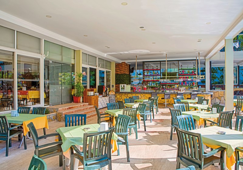 Das Herz des Hauses schlägt tagsüber bei Animation und abends bei Shows – wer mag, wechselt später in die hauseigene Disco. Kulinarisch bleibt Ihr mit All‑Inclusive flexibel: vom Frühstück bis zu Snacks und Live‑Kochen auf der Terrasse des Buffetrestaurants. Wer Ziele wie Alanya oder Manavgat ansteuern möchte, nutzt Mietwagenverleih, Tour‑Desk oder Transferservice. Viele Treppen und Rampen strukturieren die Wege; Ihr plant Euren Tag zwischen Strand, Pools, Bühne und Bars – ohne Umwege. Highlight: Familienfreundliche Struktur mit Miniclub, Spielplatz und kindgerechten Pools.