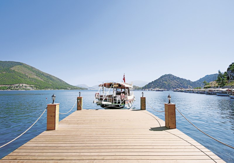 Im Gölmar Beach wohnt Ihr direkt am Kiesstrand, mit kurzem Weg zum Wasser und Blick über das Meer. Die Atmosphäre wirkt ungezwungen, mit klar strukturierten Bereichen vom Garten bis zur Sonnenterrasse. Familien nutzt Ihr den Kinderpark und den Kinderpool, während Ihr am Außenpool entspannt oder an der Poolbar verweilt.