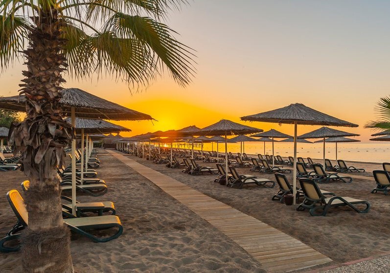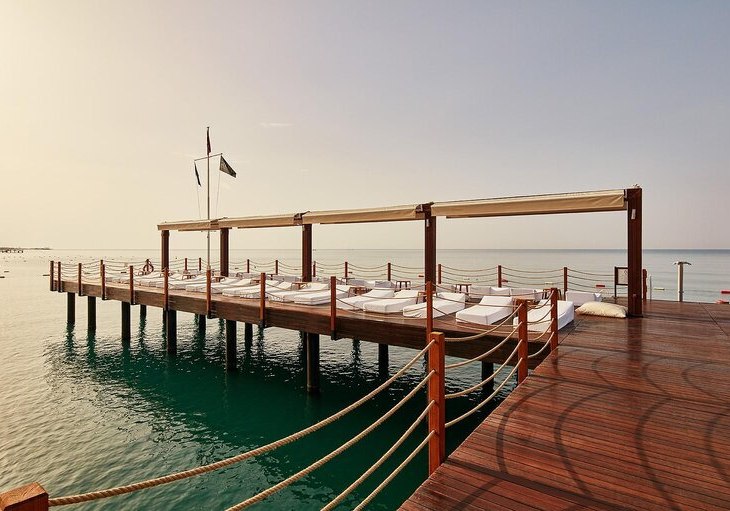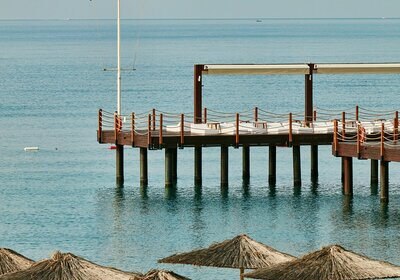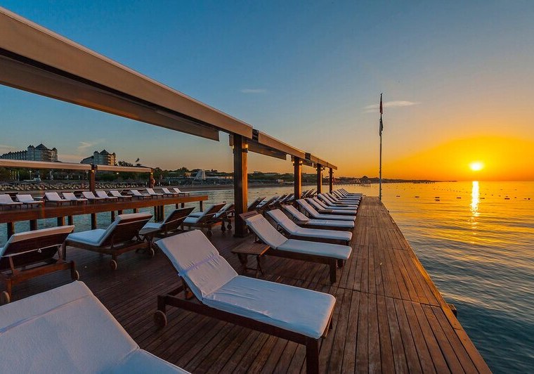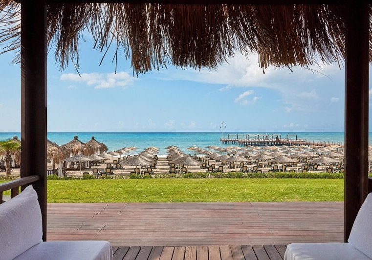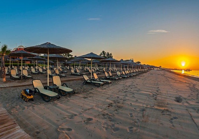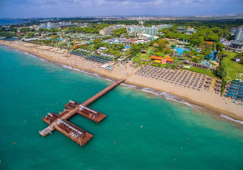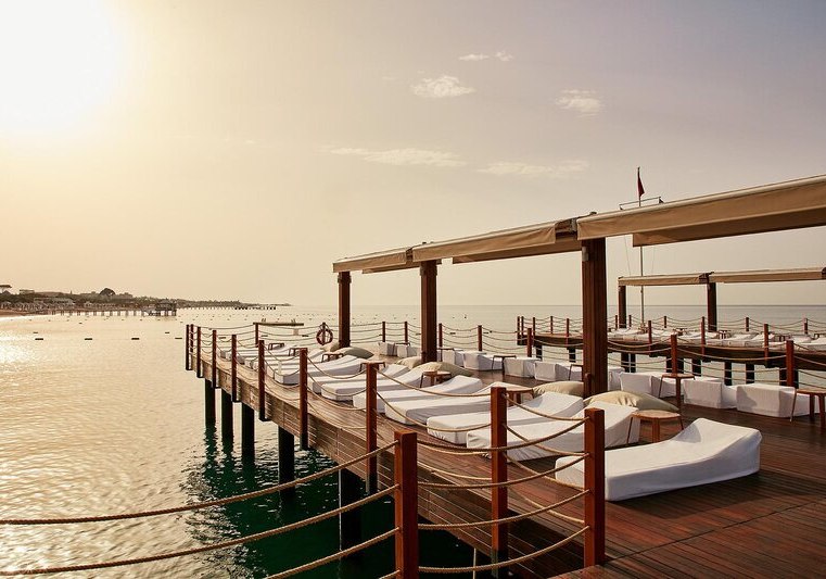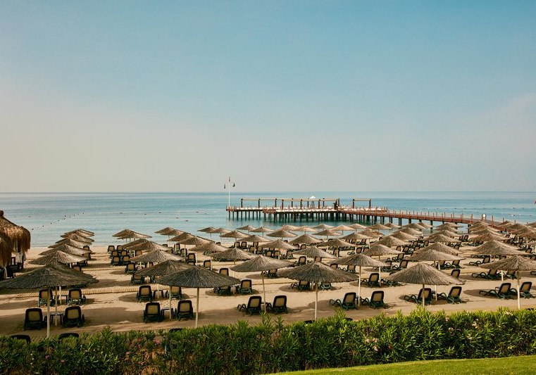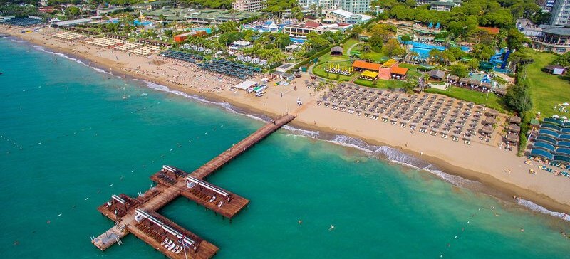 Die Lage verbindet Meer und Green: Ihr wohnt direkt am Sand-Kiesstrand von Belek, während der hoteleigene Golfplatz gegenüber liegt. So entscheidet Ihr spontan zwischen Strandtag und Golfrunde. Zum Ortskern Belek sind es etwa 3,5 Kilometer – ideal für einen Abstecher zu Geschäften oder einem kurzen Bummel. Der Flughafen Antalya liegt rund 38 Kilometer entfernt, Minibusse und Taxis stehen vor dem Hotel bereit. Diese Anbindung wirkt angenehm pragmatisch: zügige Transfers, direkte Küstenlage, kurze Wege zu regionalen Anlaufpunkten. Wer Ruhe sucht, findet sie am Strand und in den Gartenbereichen. Wer Bewegung mag, nutzt die Nähe zum Gloria Golf Club. Die Tagesstruktur ergibt sich fast von selbst: Frühstück auf der Terrasse, Gang zum Strand, ein Blick zum Fairway, später zurück durch die Anlage Richtung Abendprogramm. Highlight: Direkte Strandlage mit schneller Anbindung und kurzem Weg ins Zentrum von Belek.