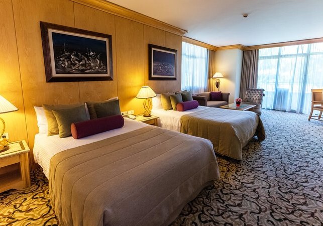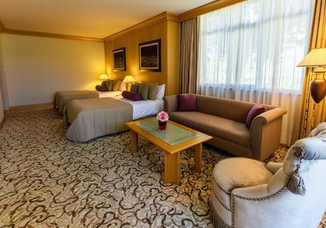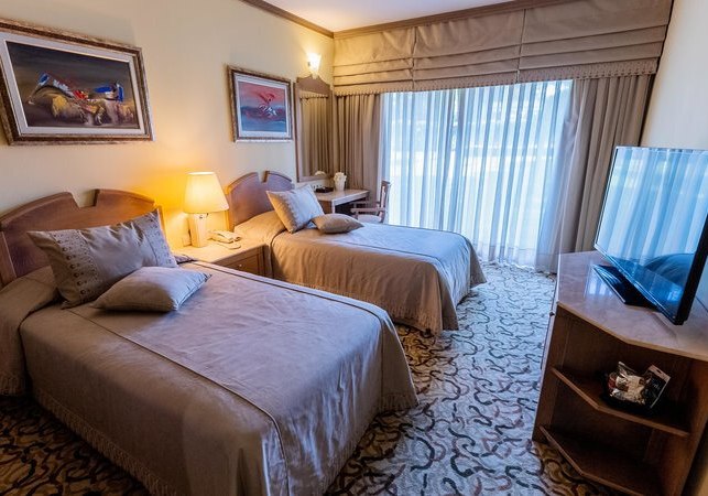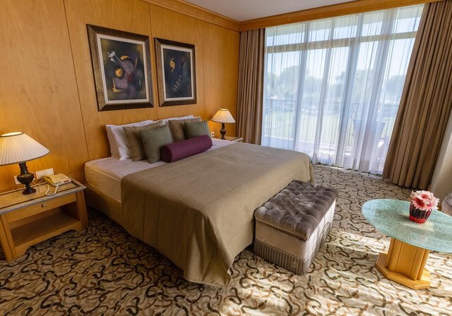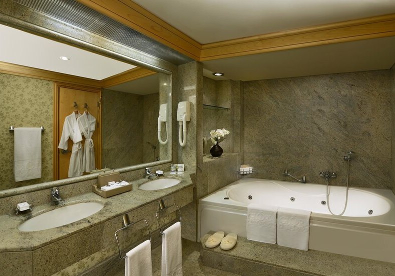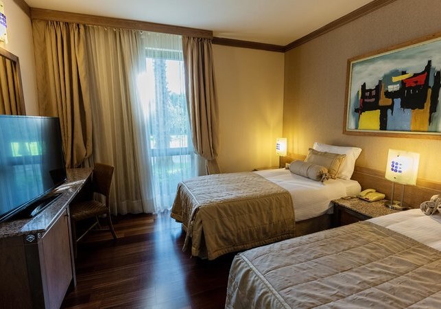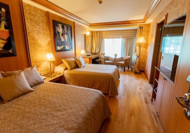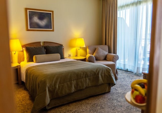 Ihr wohnt in 293 Zimmern, verteilt auf ein sechsstöckiges Haupthaus und drei Nebengebäude mit je drei Etagen. Alle Zimmer bieten Dusche/WC, Föhn, Bademantel, IP-TV, Minibar, Telefon, zentrale Klimaanlage, Safe sowie Teppich- oder Parkettboden. Balkon oder Terrasse öffnet den Blick nach draußen und bringt Licht in den Tag. Das Design bleibt funktional, die Ausstattung vollständig.