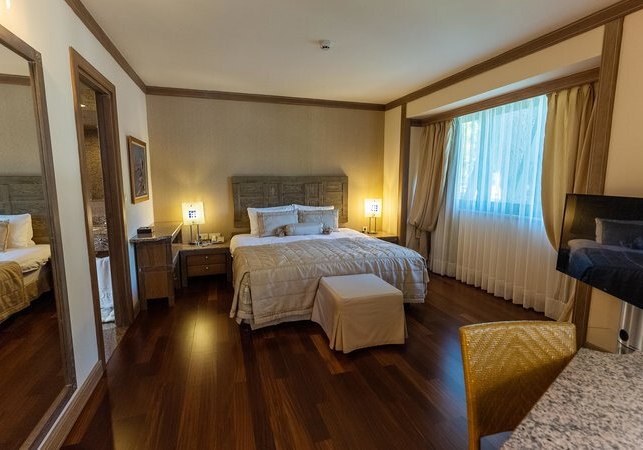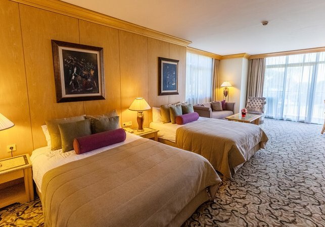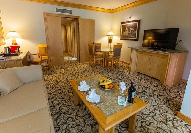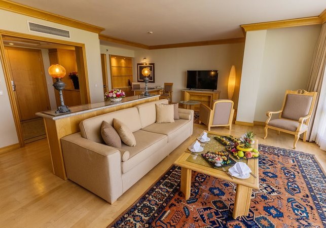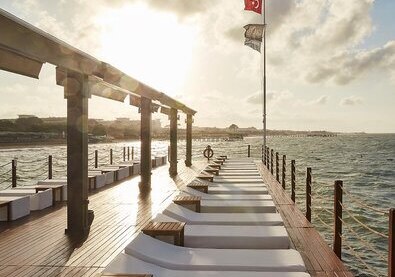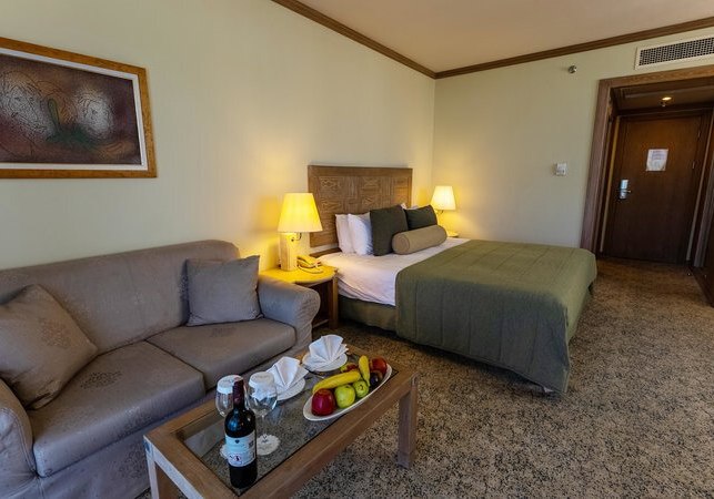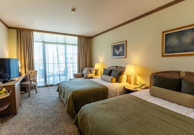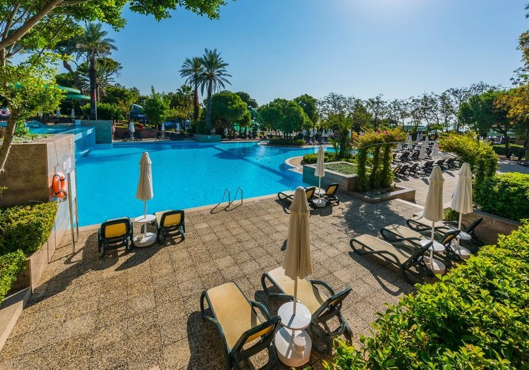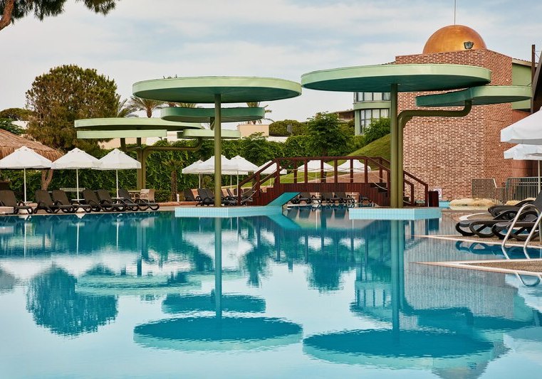 Im Gloria Verde Resort wohnt Ihr direkt am Sand-Kiesstrand von Belek und blickt zugleich auf den hoteleigenen Golfplatz gegenüber. Die großzügig angelegten Bereiche wirken strukturiert und einladend: helle Lobbylounge, klare Wege, Gartenflächen und kurze Verbindungen zum Strand. Familien schätzen die kindgerechten Angebote vom Miniclub bis zur Mini-Disco, Golfer die Nähe zum Gloria Golf Club, Erholungssuchende das Spa mit Thalasso-Elementen. Abends trefft Ihr Euch zwischen Amphitheater, Livemusik und Bar auf ein entspanntes Programm ohne Hektik.