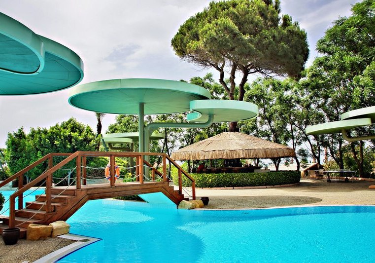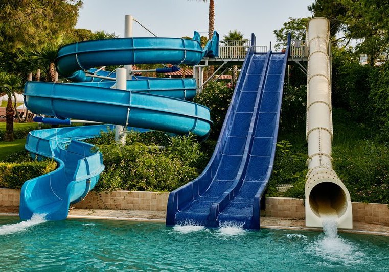 - Poolmix: Außenpool, Kinderpool und Rutschen schaffen klar getrennte Zonen.
