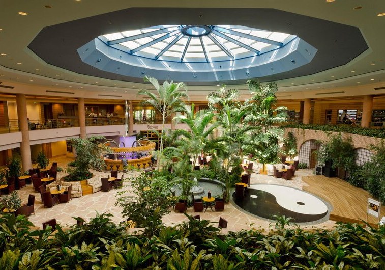 Der Empfang mit Rezeption, Lobbylounge und Sitzgruppen bildet den ruhigen Startpunkt. WLAN steht in Lobby und Zimmern bereit, drei Aufzüge im Haupthaus erleichtern den Weg. Shops und Konferenzräume ergänzen die Infrastruktur. Draußen warten Sonnenbereiche mit Liegestühlen und Schirmen, während Poolzonen, Kinderpool und Wasserrutschen für Abwechslung sorgen. Die Wege bleiben kurz und nachvollziehbar.