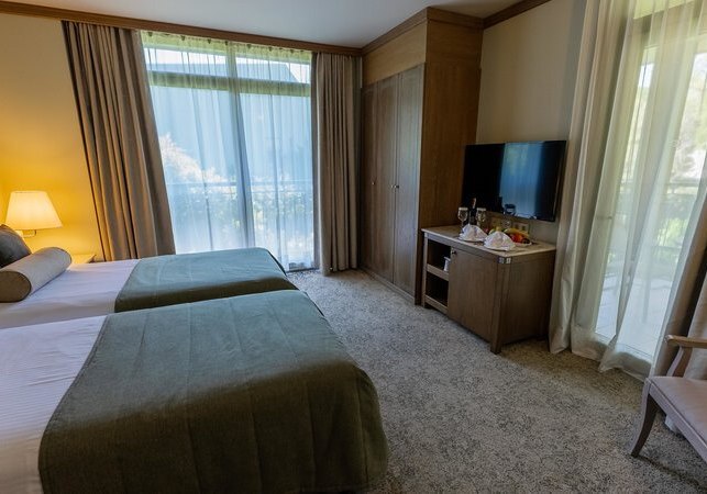 Der sportliche Takt reicht vom Green bis ins Wasser: Gegenüber liegen zwei 18-Loch- und ein 9-Loch-Platz des Gloria Golf Clubs. In der Anlage ergänzt Ihr Fitnessraum, Tennis und ein breites Programm von Aerobic bis Yoga. Am Wasser warten Aktivitäten von Wasserski bis Windsurfen, dazu Kanu, Segeln oder Bananenboot – Ihr wählt Euer Tempo.