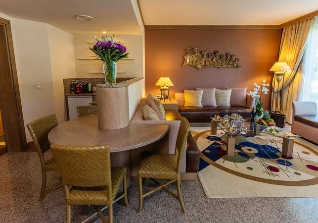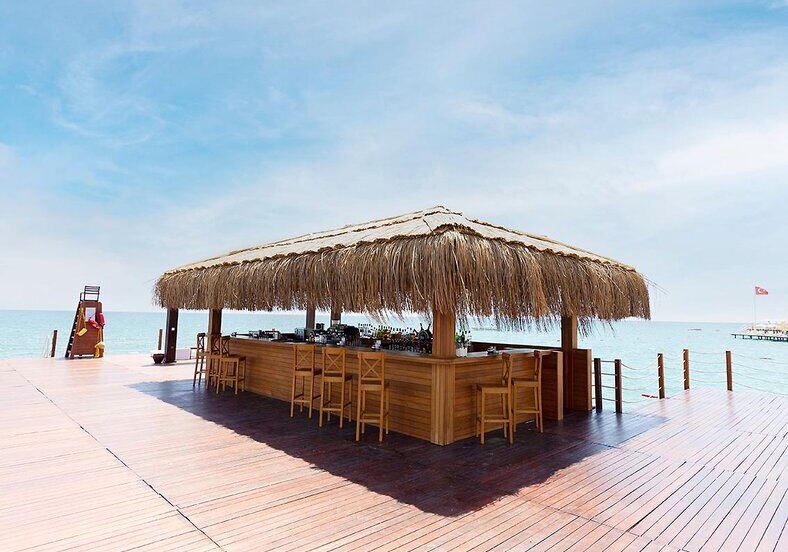 Im Zentrum steht ein komfortabler Aufenthalt mit verlässlicher Infrastruktur: WLAN in Lobby und Zimmern, Shops, Patisserie, Hauptrestaurant mit Terrasse und zwei À-la-carte-Optionen. Tagsüber belebt Euch ein dezentes Animationsprogramm, später sorgen Shows und Konzerte für Stimmung. Wer aktiv bleiben will, wählt zwischen Fitnessraum, Bowling und Billard im Gamecenter oder den vielfältigen Sportangeboten. Der Wechsel aus ruhigen Bereichen und belebten Spots fühlt sich stimmig an, Ihr bewegt Euch vom Strand zur Terrasse und weiter ins Spa, ohne die Orientierung zu verlieren. Highlight: Direkte Strandlage mit Golfplatz gegenüber, ideal für Meerliebhaber und Golffans.