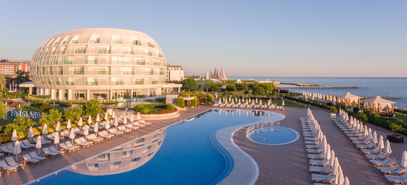 Die Lage ist klar definiert: direkt am Sandstrand, sogar an dreien, eingebettet in eine rund 50.000 Quadratmeter große Gartenanlage. Alanya liegt etwa 20 Kilometer entfernt, sodass Ihr Ausflüge in die Stadt gut planen könnt. Zusätzlich nutzt Ihr den Pool- und Strandbereich des Nachbarhotels Gold Island Mondo unkompliziert mit.