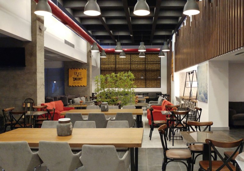 - Terrassenplatz: Hauptrestaurant mit Terrasse verbindet Buffetwege und Außensitzplätze.