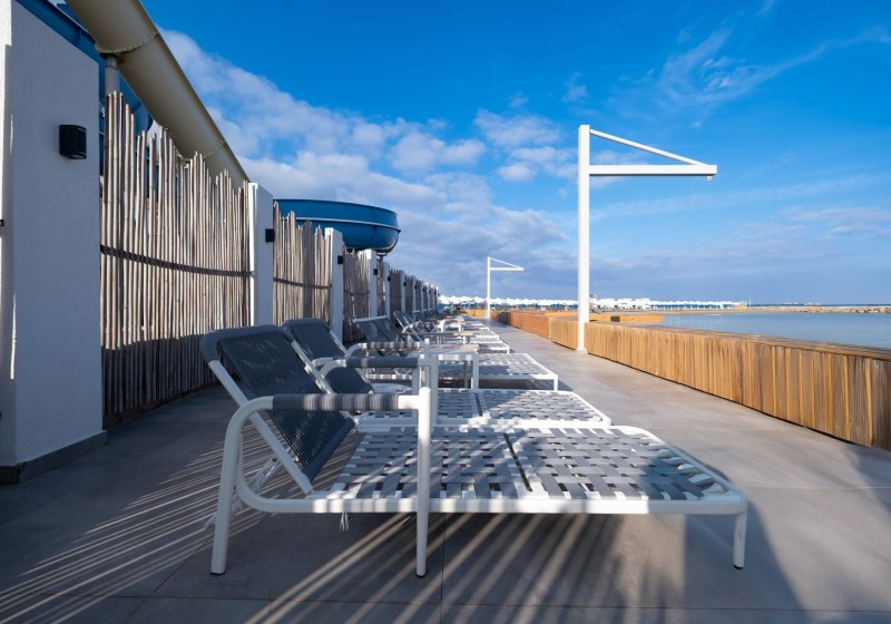 - Strandzugang: Sonnenliegen und Schirme stehen direkt an drei Stränden.