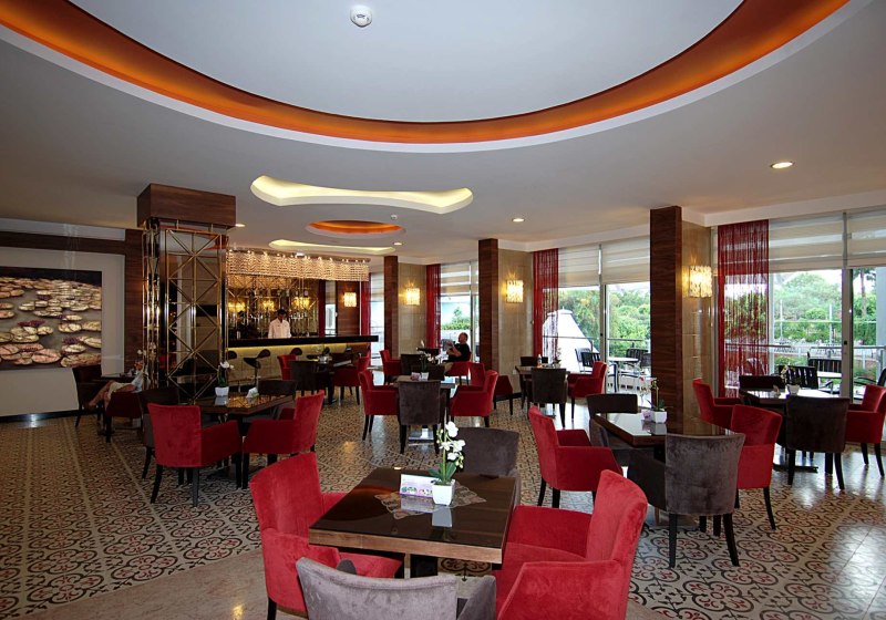 Die öffentlichen Bereiche sind kompakt organisiert: Lobby, kleine Bücherei und TV-Ecke, dazu Business‑Ecke und Konferenzraum. WLAN nutzt Ihr in Lobby, Restaurant und am Pool inklusive. Familien freuen sich über separates Kinderbecken, Babybetten auf Anfrage und flexible Verpflegungsmodelle. Highlight: Strandnahe Citylage mit kurzer Distanz zum Zentrum von Alanya.