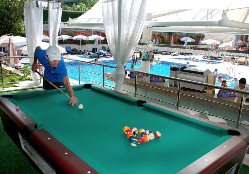 Aktiv startet Ihr im Fitness‑Studio oder bei Aqua‑Fitness im Pool. Am Strand warten Optionen wie Beach‑Volleyball, Bananenboot, Jet Ski, Tretboot, Schnorcheln und Tauchen. Wer lieber an Land bleibt, nutzt Darts, Tischtennis, Billard oder Tennis.