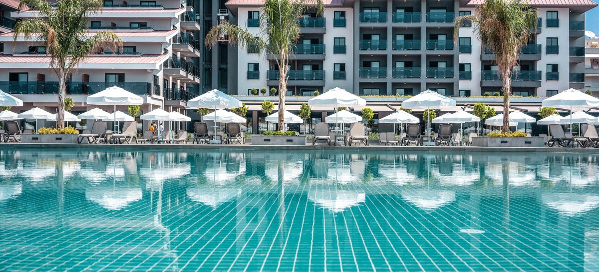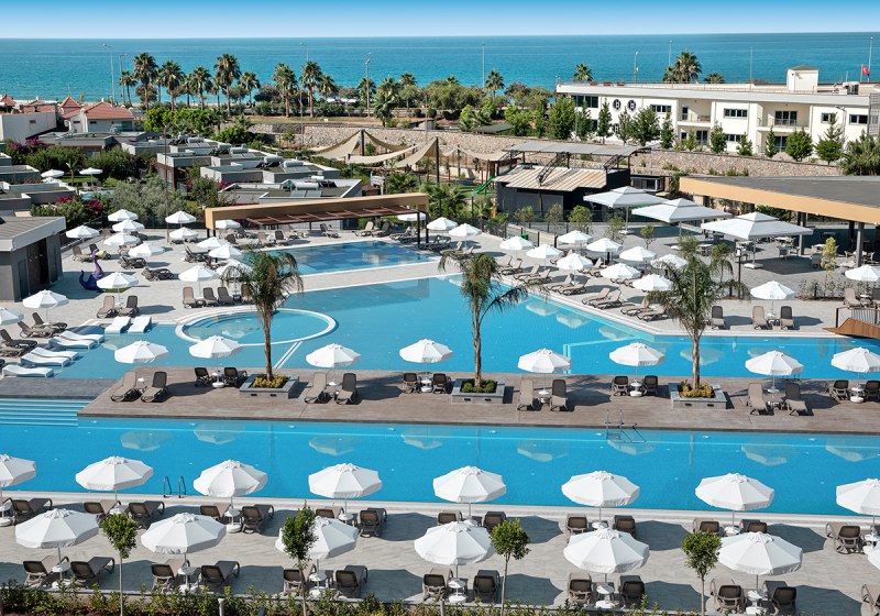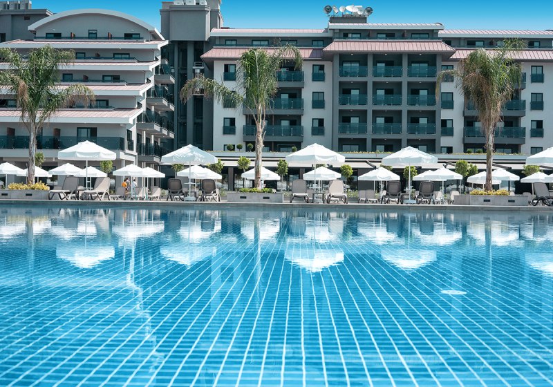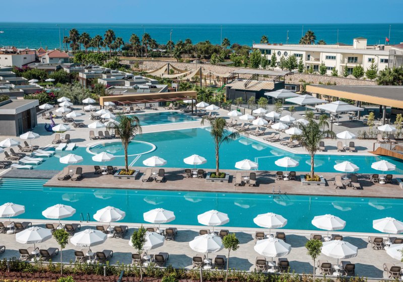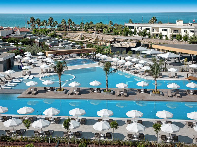 Green Garden Resort & Spa Hotel verbindet kurze Wege zum Strand mit einem klaren Aktivangebot. Aquapark, Pools und strukturierte Unterhaltung treffen auf ruhige Zonen mit Hallenbad, Sauna und Hamam. Gastronomisch bleibt Ihr flexibel – zwischen Hauptrestaurant, À-la-carte, Bars und Starbucks Café.