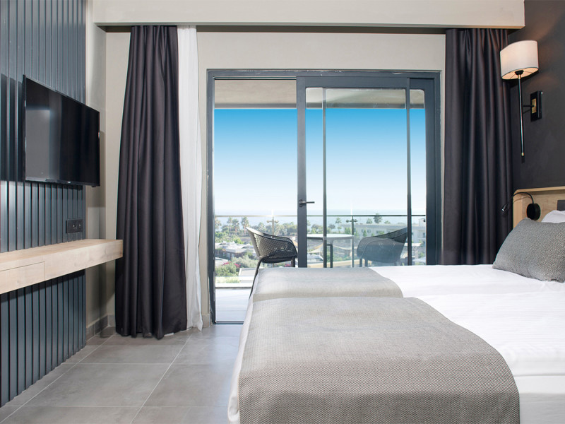 • Klimaanlage • Balkon (je nach Zimmerkategorie) • Kühlschrank • Haartrockner • Kochnische • Sitzecke (je nach Zimmerkategorie) • Mikrowelle • Minikühlschrank • Minibar (kostenfrei) • Safe (kostenfrei) • Meerblick (je nach Zimmerkategorie) • Raucherzimmer • Schlafsofa • Kaffee-/Teezubereiter • Terrasse • Fernseher • rollstuhlgerechte Zimmer (auf Anfrage) • WiFi (kostenfrei) • Balkon oder Terrasse • Gartenblick • Schallisolation
