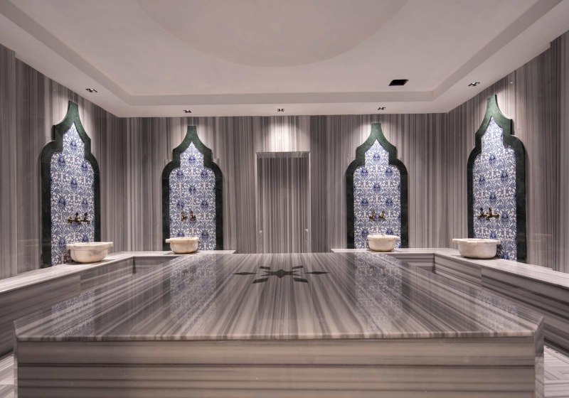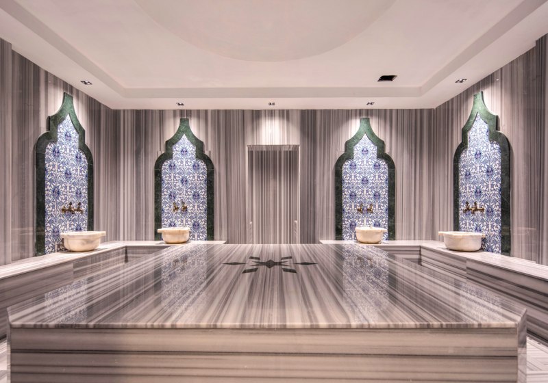 - Spa: Hallenbad, Hamam und Whirlpool bilden das Wasser-Wärme-Dreieck.