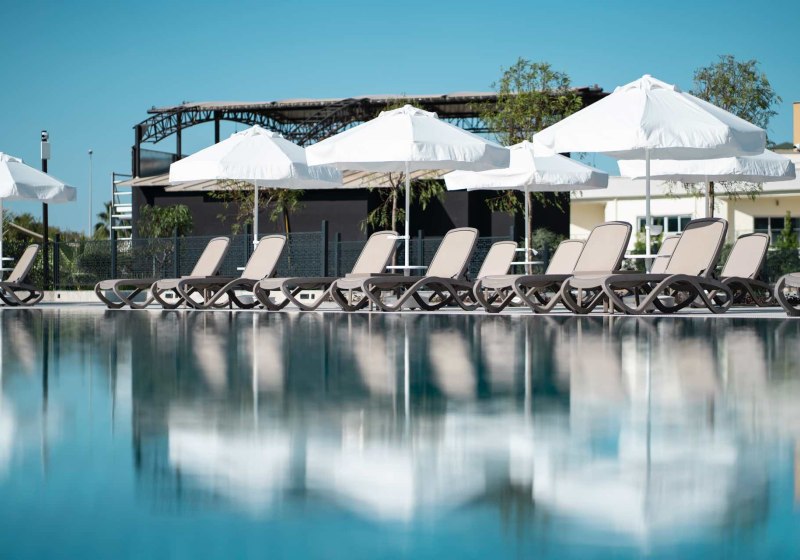 Die Infrastruktur des Green Garden Resort & Spa Hotel ist auf flüssige Abläufe ausgelegt. WLAN im gesamten Hotel hält Euch verlässlich online. Im Zentrum stehen der Süßwasser-Swimmingpool, ein separater Kinderpool, Whirlpool und die Sonnenterrasse mit Liegen und Schirmen. Der Aquapark mit vier Wasserrutschen und Kinderbereich setzt einen klaren Aktivpunkt, während Pools im Villenbereich exklusiv für Villagäste reserviert sind.